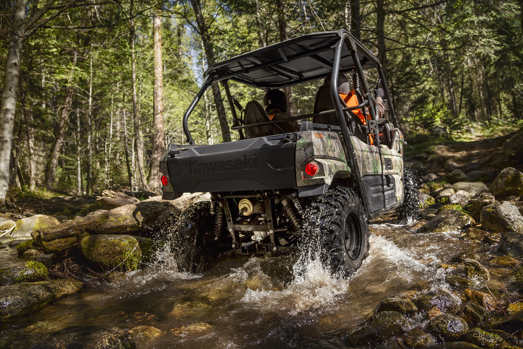 Recreation Utility Vehicles (RUV) don't come any better than the Teryx, packed with fantastic versatility for work, play, fishing, hunting and off road driving are all within easy reach of the Teryx. The strong and reliable V-Twin fuel injected engine has a CVT transmission with a centrifugal clutch, getting the power down with an electric selectable 2WD or 4WD or 4WD with a locked front differential for maximum traction when required. Large 26 inch tyres on 12 inch steel rims maximize traction. The Teryx is fitted with high performance FOX front the rear shock absorber with adjustable damping and spring preload for improved ride comfort. Standard roof, alloy wheels, front brush guard, LED headlights, Tilt adjustable steering wheel with Electric Power Steering, high back contoured seats with handy drivers side seat adjustment, help round out the many quality features of the Teryx. Standard ROPS approved cab frame.