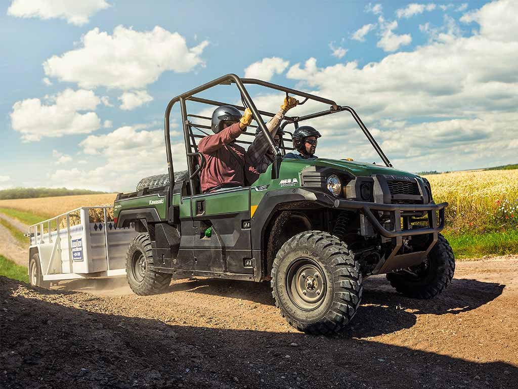 The MULE PRO-DX side x sides combine the rugged full-size MULE PRO chassis capability and versatility with the hardworking muscle of a diesel engine. This high capacity, three-passenger vehicle has the ability to move gear, tools, materials and people at the jobsite.